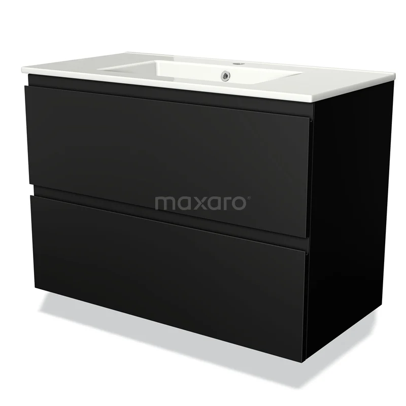 Modulo Waschtische | 90 cm Matt Schwarz Grifflos front Keramik 2 übereinanderliegende Schubladen