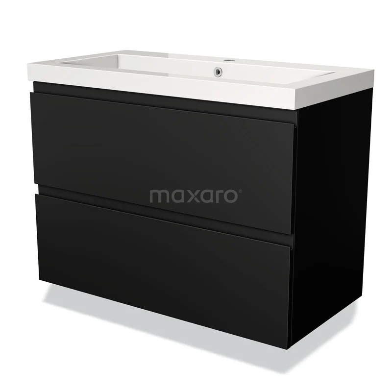 Modulo Waschtische | 90 cm Matt Schwarz Grifflos front Mineralguss 2 übereinanderliegende Schubladen