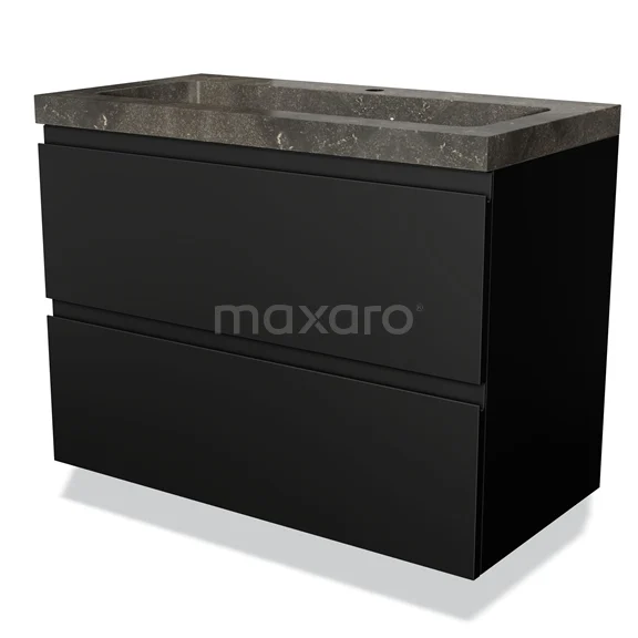Modulo Waschtische | 90 cm Matt Schwarz Grifflos front Naturstein 2 übereinanderliegende Schubladen