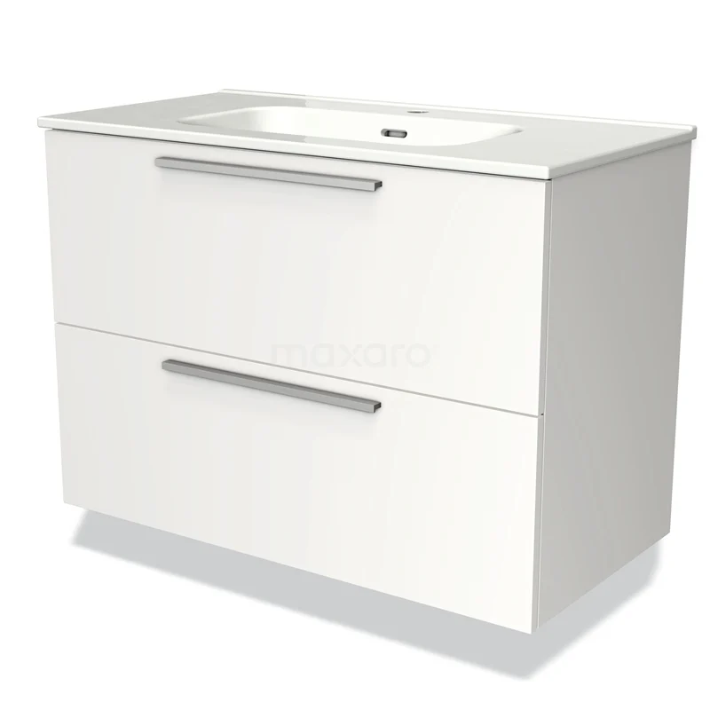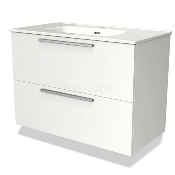 Modulo Waschtische | 90 cm Matt Weiß Flach front Keramik 2 übereinanderliegende Schubladen