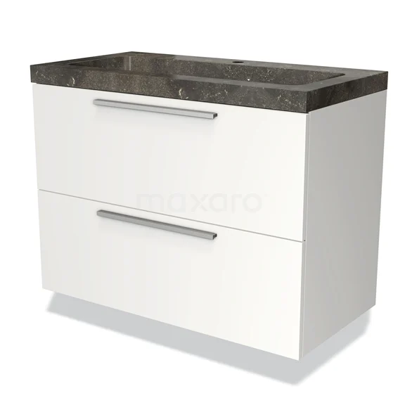Modulo Waschtische | 90 cm Matt Weiß Flach front Naturstein 2 übereinanderliegende Schubladen