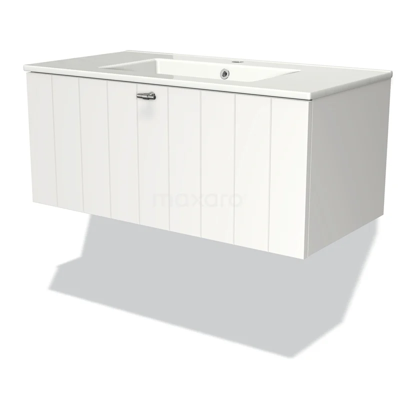Modulo Waschtische | 90 cm Matt Weiß Lamelle front Keramik 1 Schublade