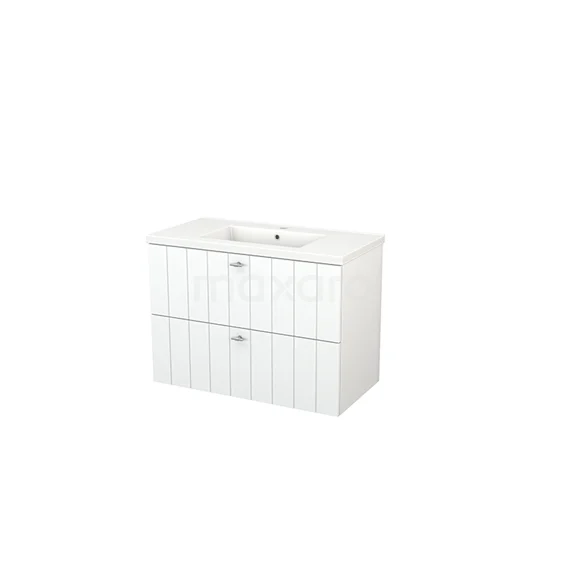 Modulo+ Waschtische | 90 cm Matt Weiß Lamelle front Keramik 2 übereinanderliegende Schubladen