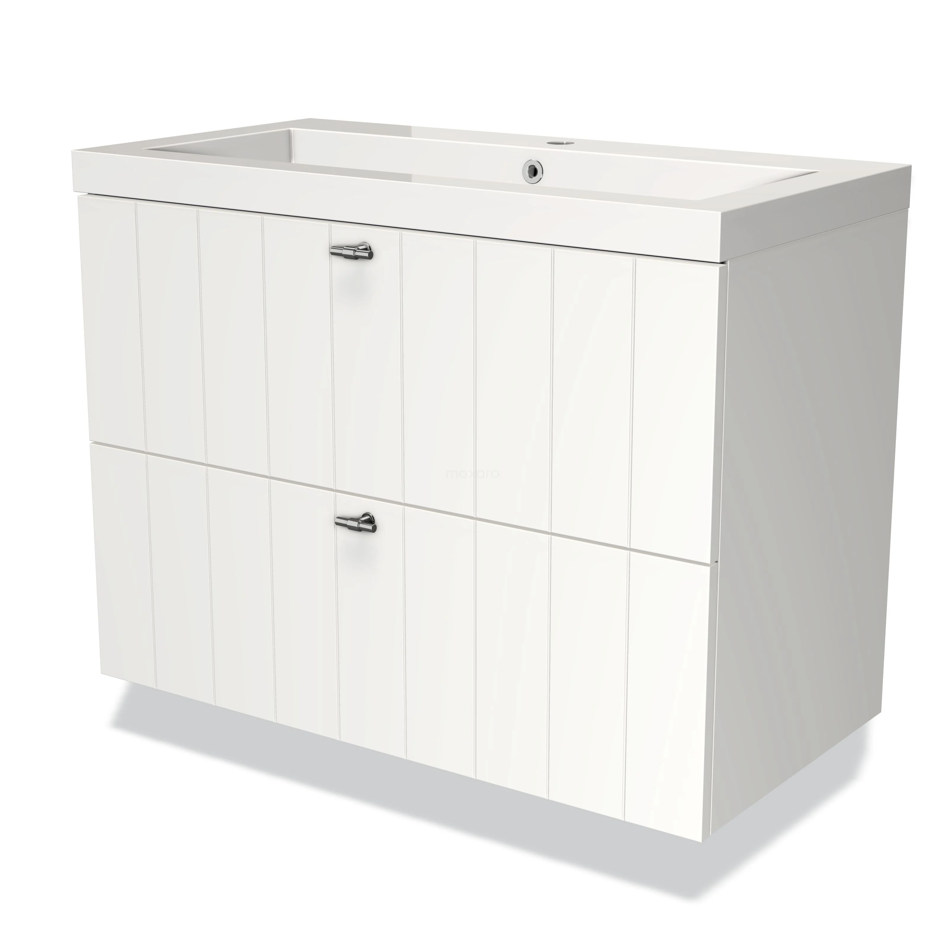 Modulo Waschtische | 90 cm Matt Weiß Lamelle front Mineralguss 2 übereinanderliegende Schubladen
