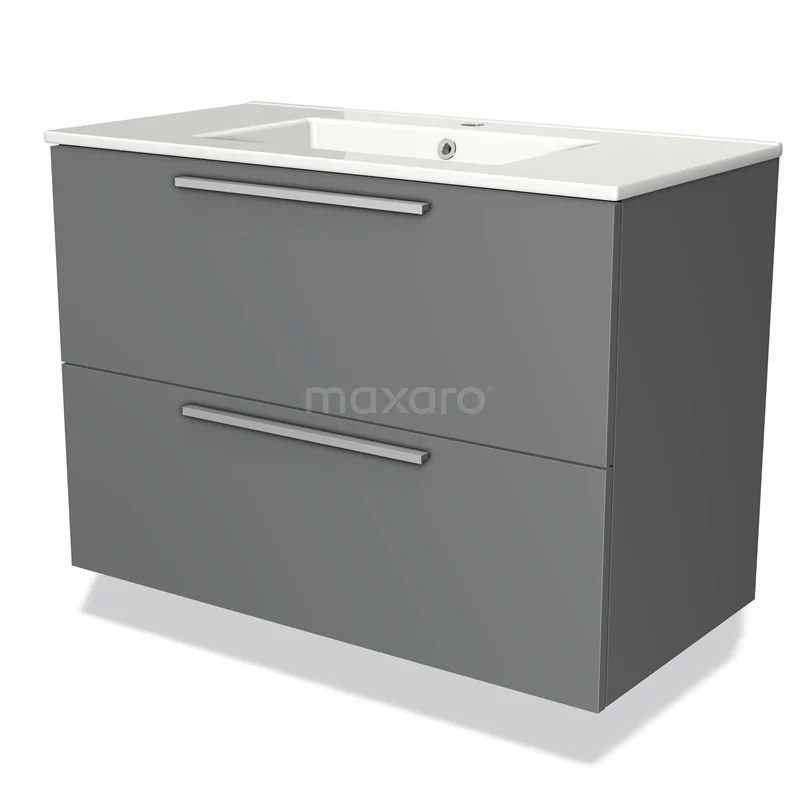 Modulo Waschtische | 90 cm Mittelgrau Flach front Keramik 2 übereinanderliegende Schubladen