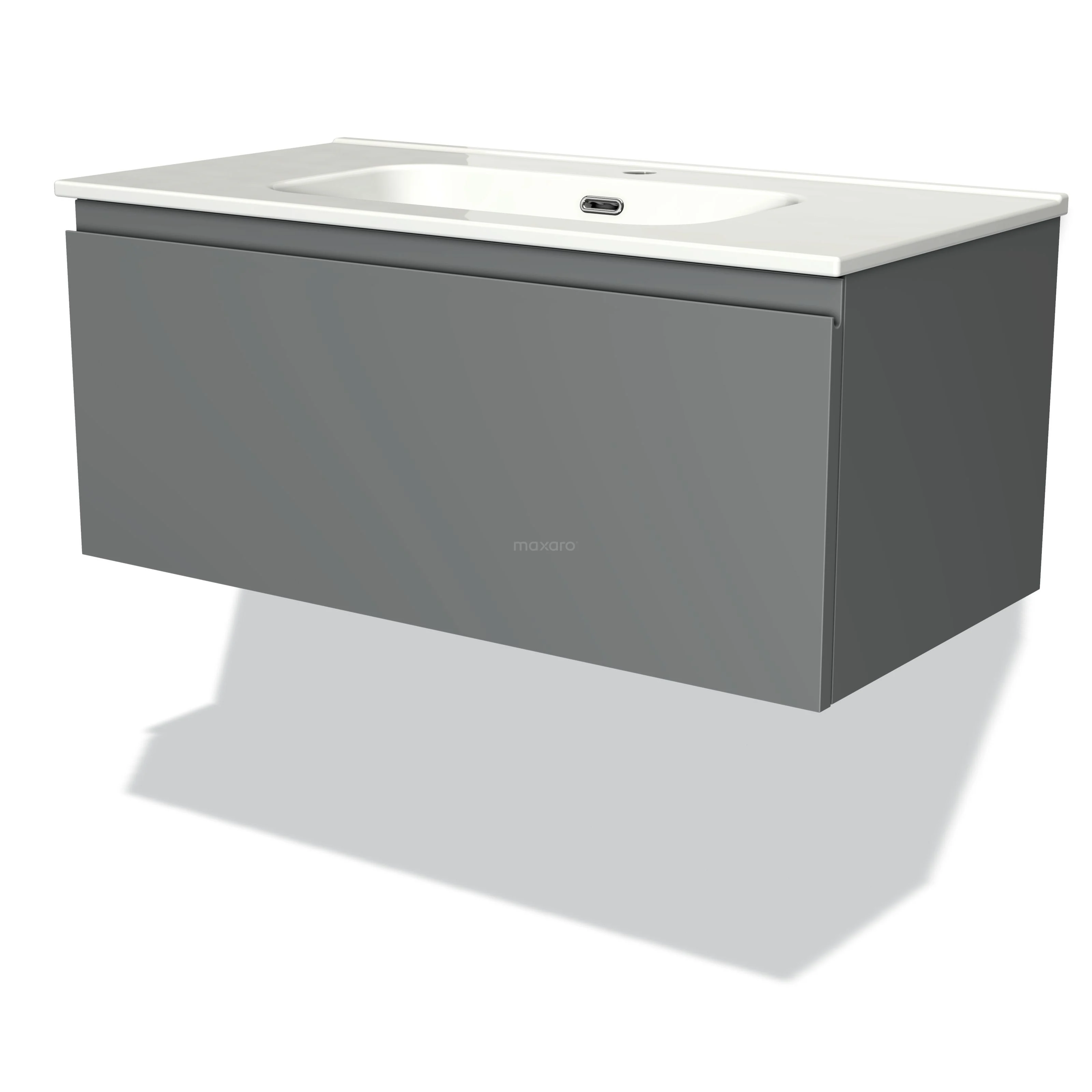 Modulo Waschtische | 90 cm Mittelgrau Grifflos front Keramik 1 Schublade