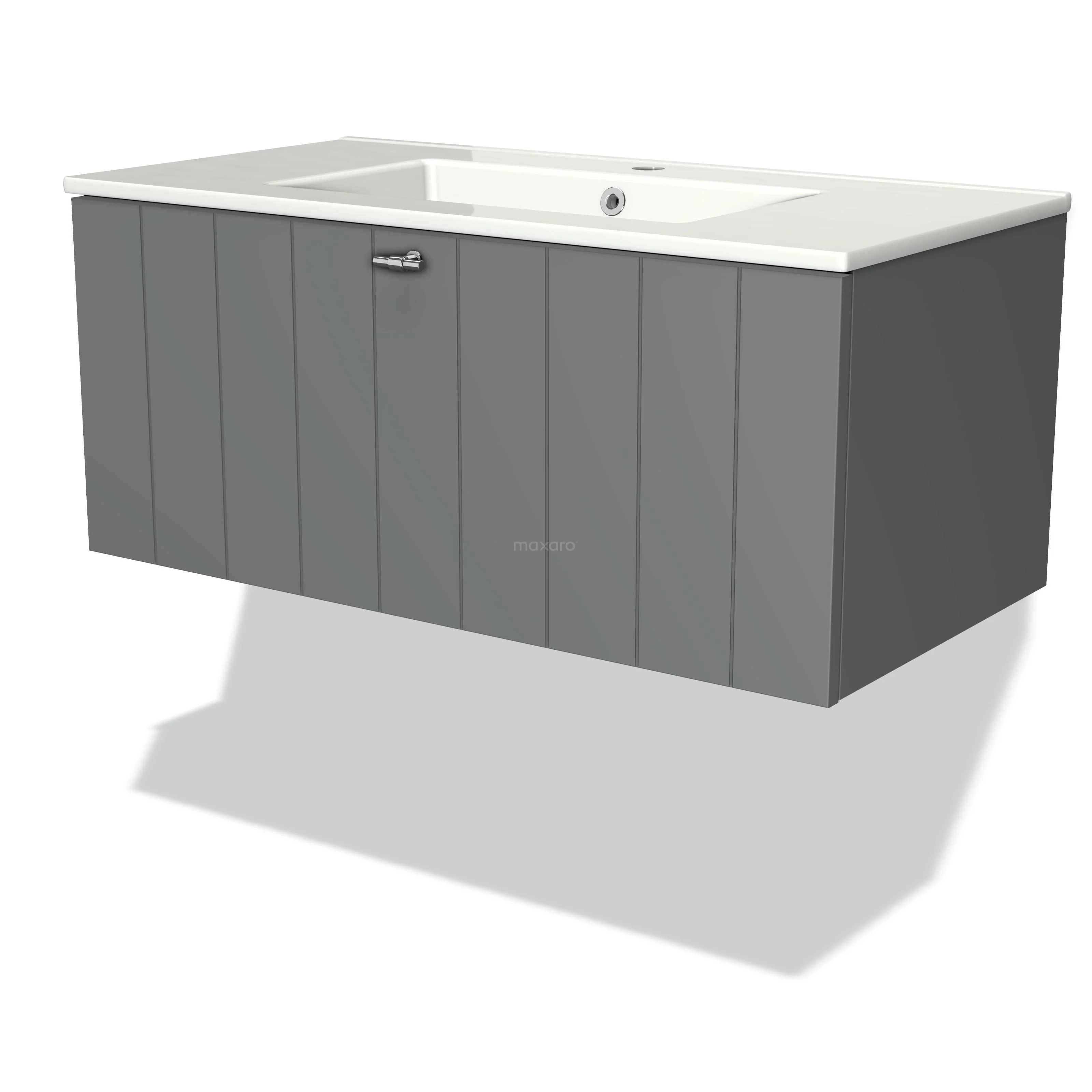 Modulo Waschtische | 90 cm Mittelgrau Lamelle front Keramik 1 Schublade