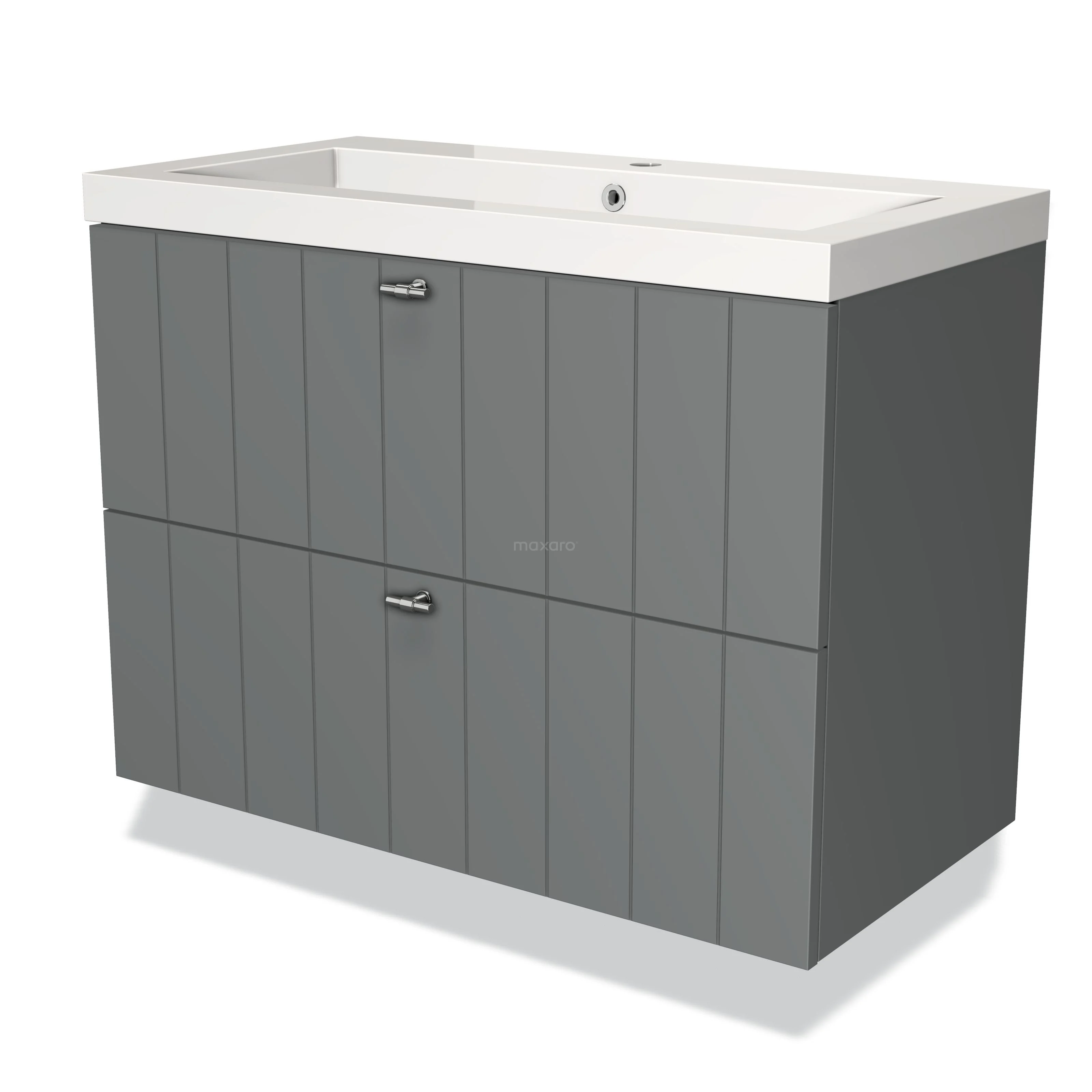 Modulo Waschtische | 90 cm Mittelgrau Lamelle front Mineralguss 2 übereinanderliegende Schubladen
