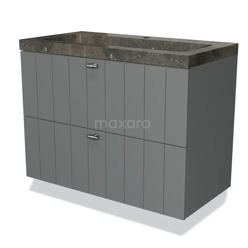 Modulo Waschtische | 90 cm Mittelgrau Lamelle front Naturstein 2 übereinanderliegende Schubladen