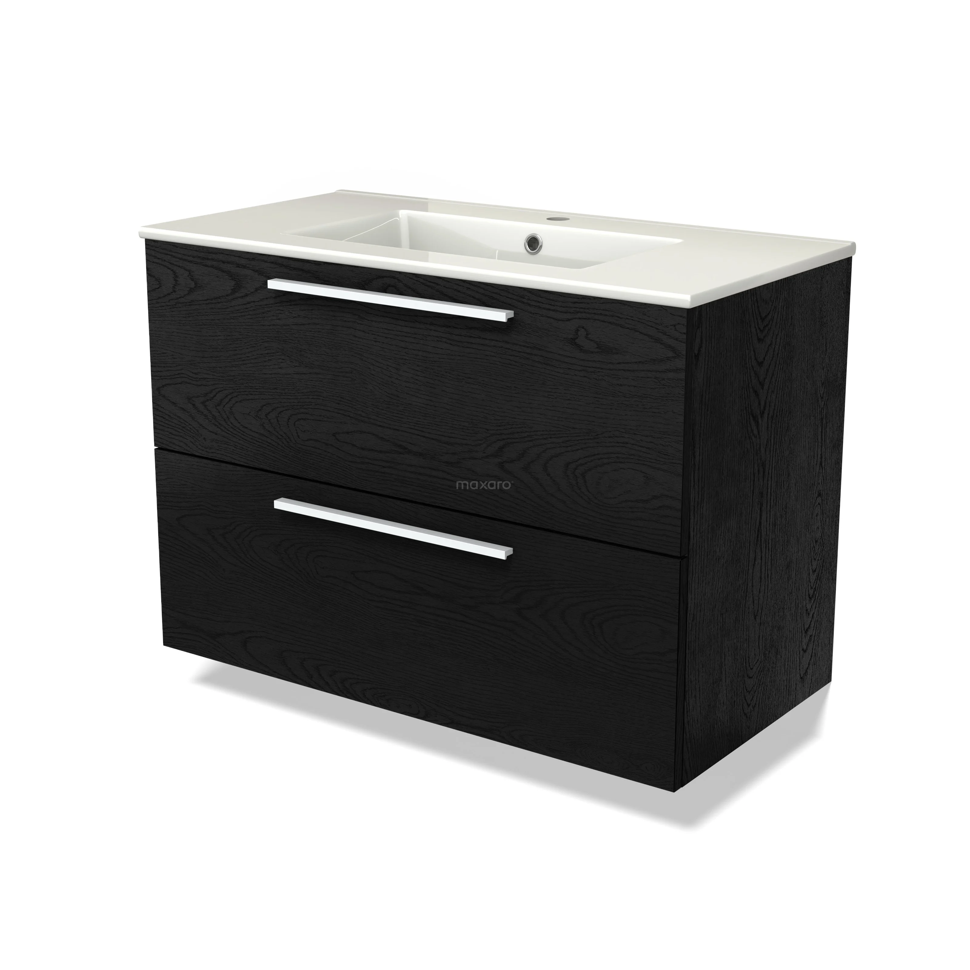 Modulo Waschtische | 90 cm Schwarze Eiche Flach front Keramik 2 übereinanderliegende Schubladen