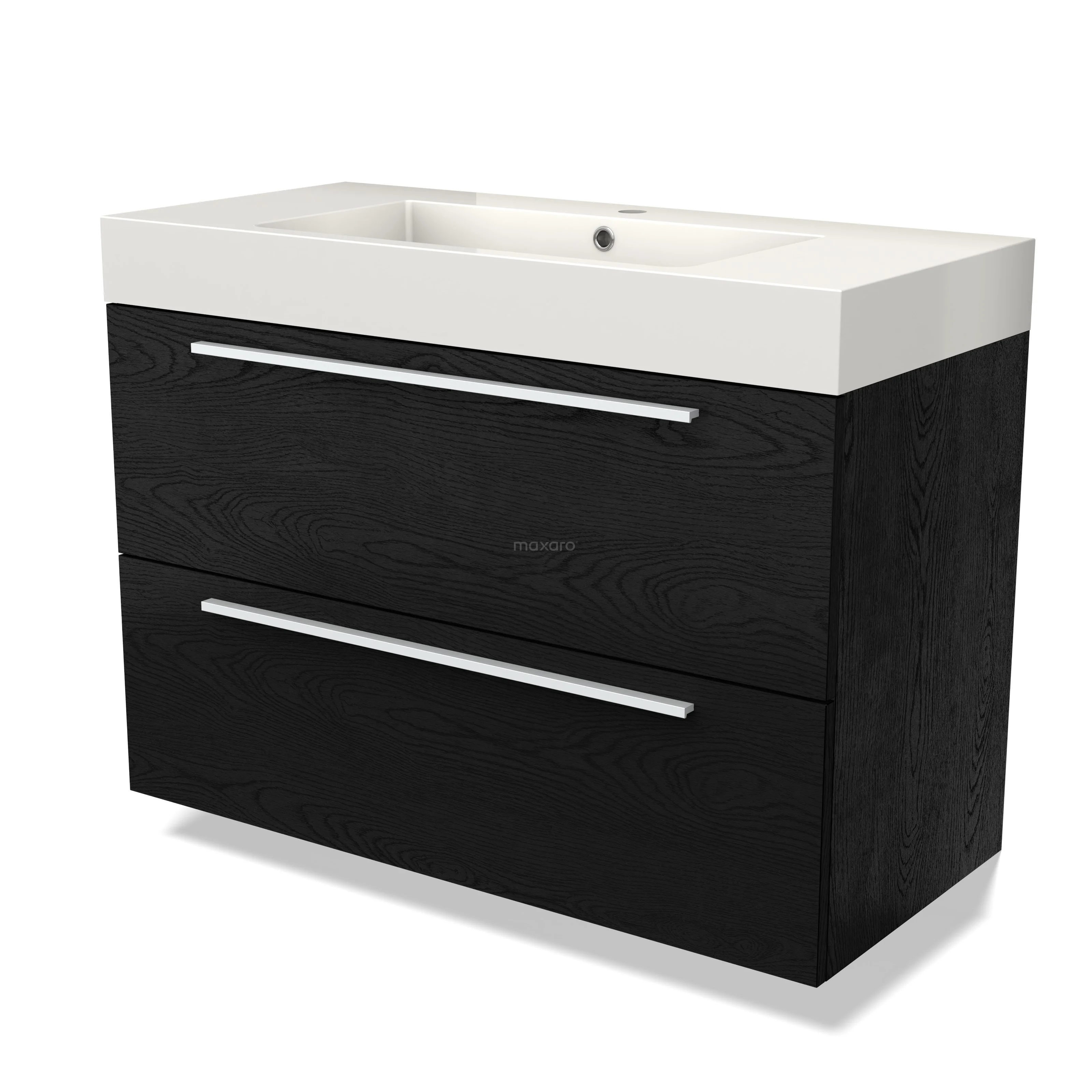 Das bodenstehende Badmöbel (100 cm) ist das Herzstück für die tägliche Körperpflege wie Schminken, Rasieren oder Zähneputzen. Das Waschbecken hat 1 Hahnloch und ist ideal für die gleichzeitige Benutzung durch 1 Person. Das Möbel bietet außerdem genügend Platz, um Ihre WC- und Pflegeprodukte ordentlich zu verstauen.