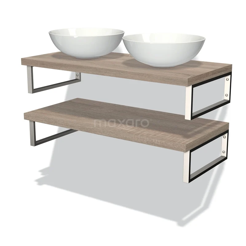 Badmöbel für Aufsatzwaschbecken 100 cm Modulo Plato Eiche 2 Waschtischplatten