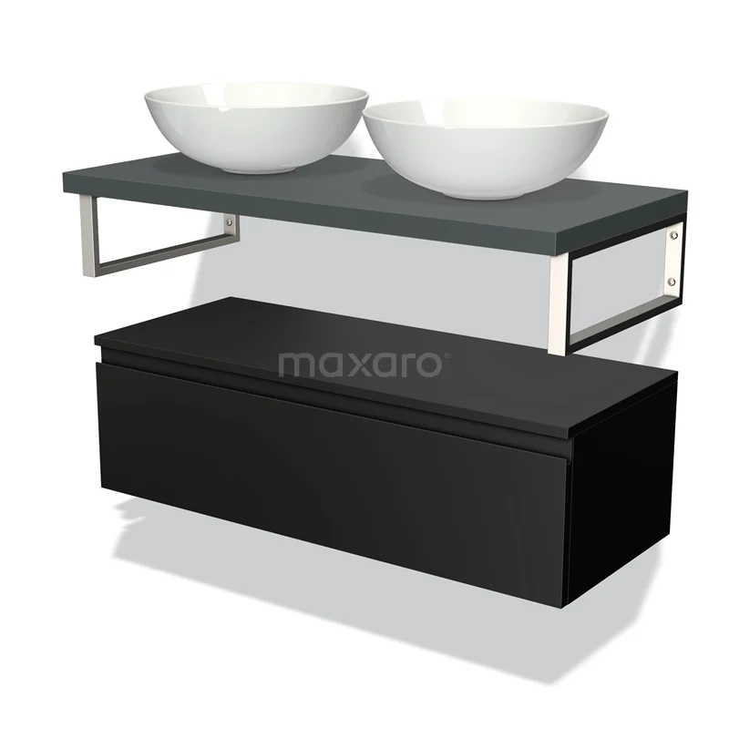 Badmöbel für Aufsatzwaschbecken 100 cm Modulo Plato Matt Schwarz 1 Schublade Grifflos Dunkelgrau Platte