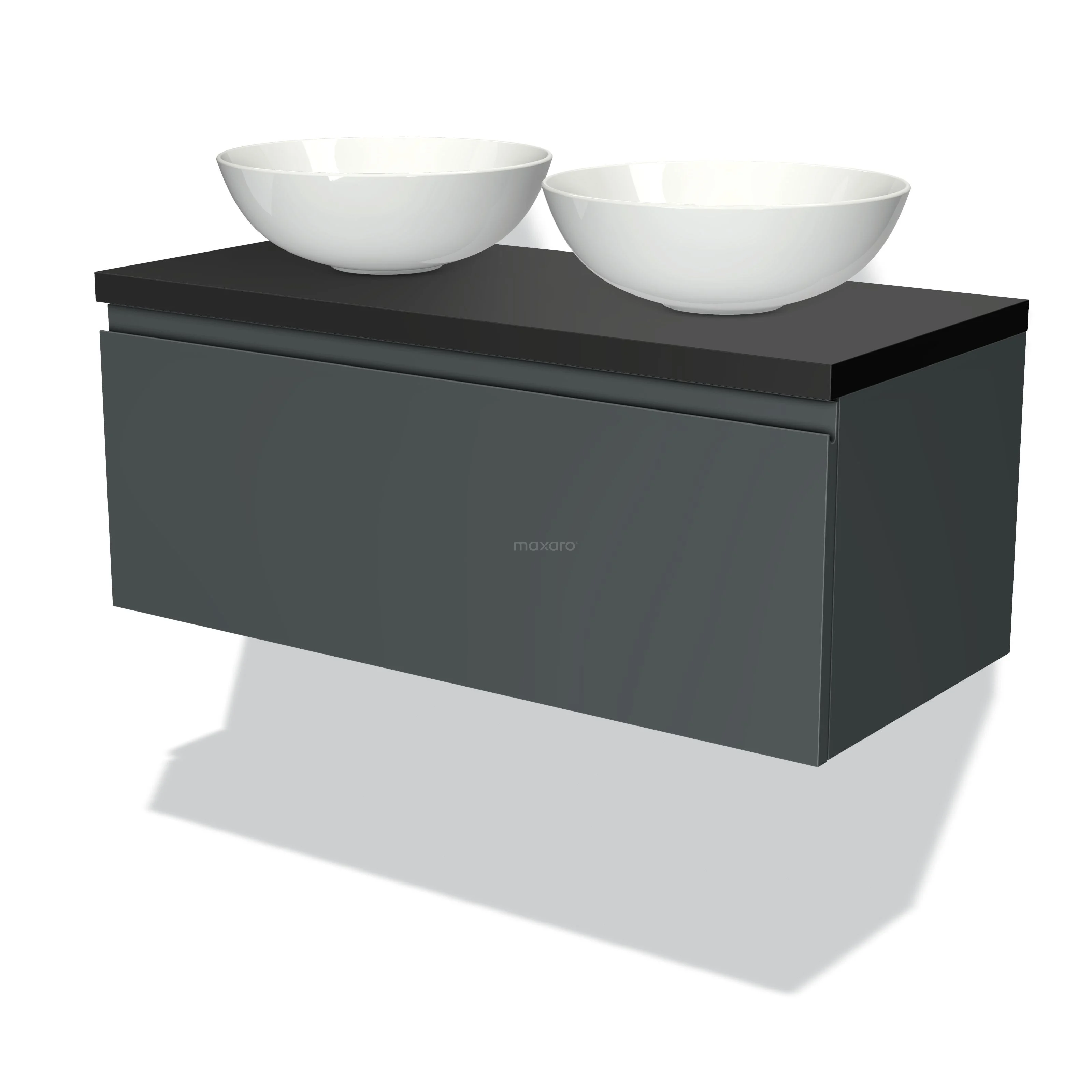 Badmöbel für Aufsatzwaschbecken 100cm Modulo Plato Dunkelgrau 1 Schublade grifflos Matt Schwarz Platte