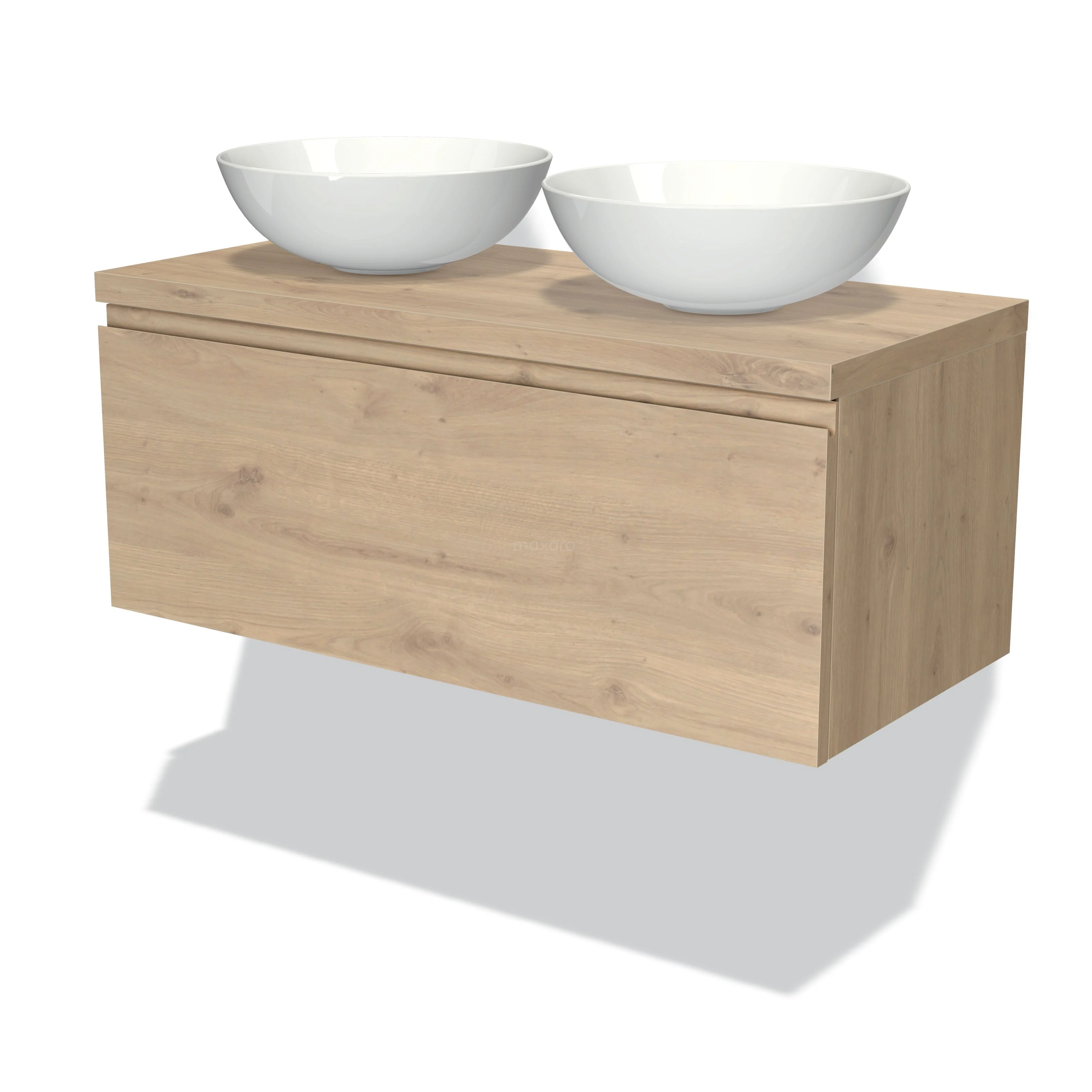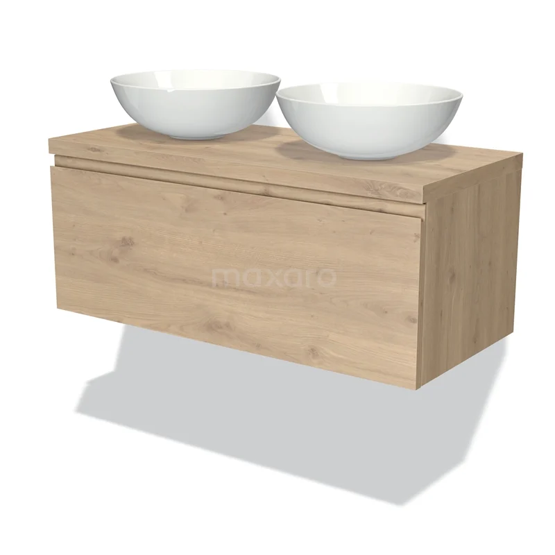 Badmöbel für Aufsatzwaschbecken 100cm Modulo Plato Hellbraune Eiche 1 Schublade grifflos