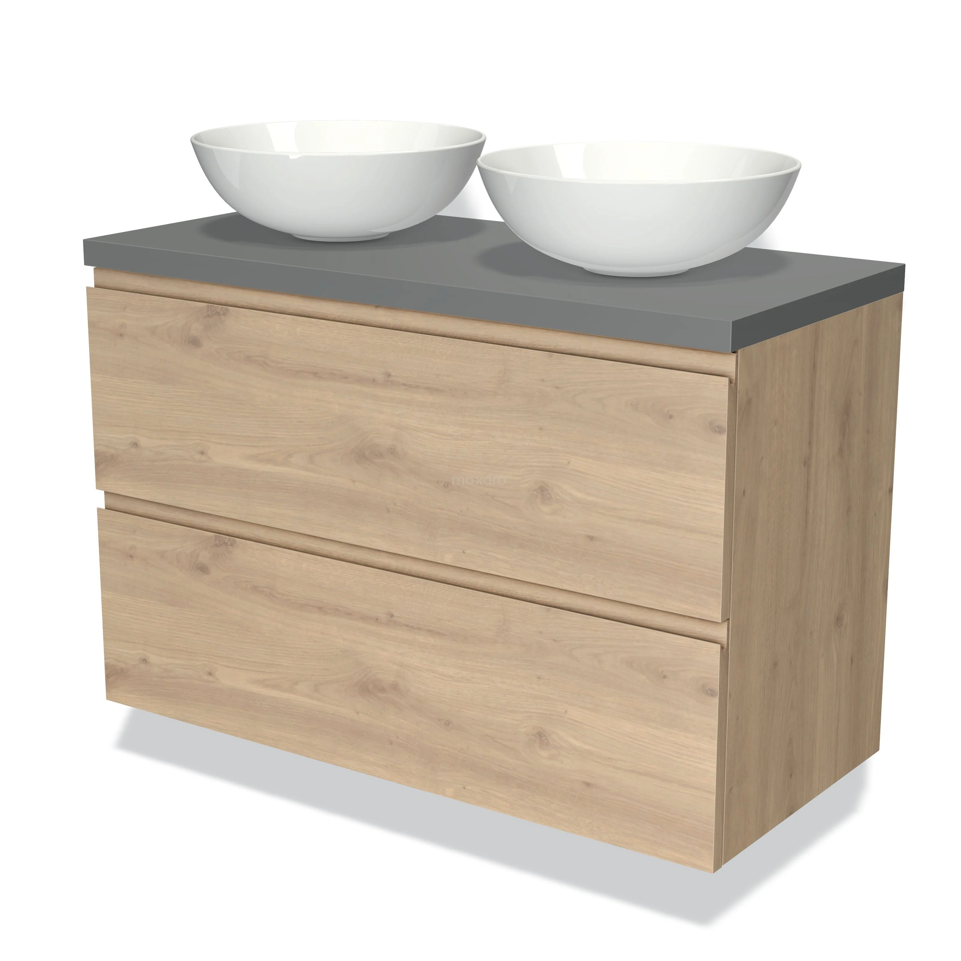 Badmöbel für Aufsatzwaschbecken 100cm Modulo Plato Hellbraune Eiche 2 Schubladen Grifflos Mittelgraue Platte