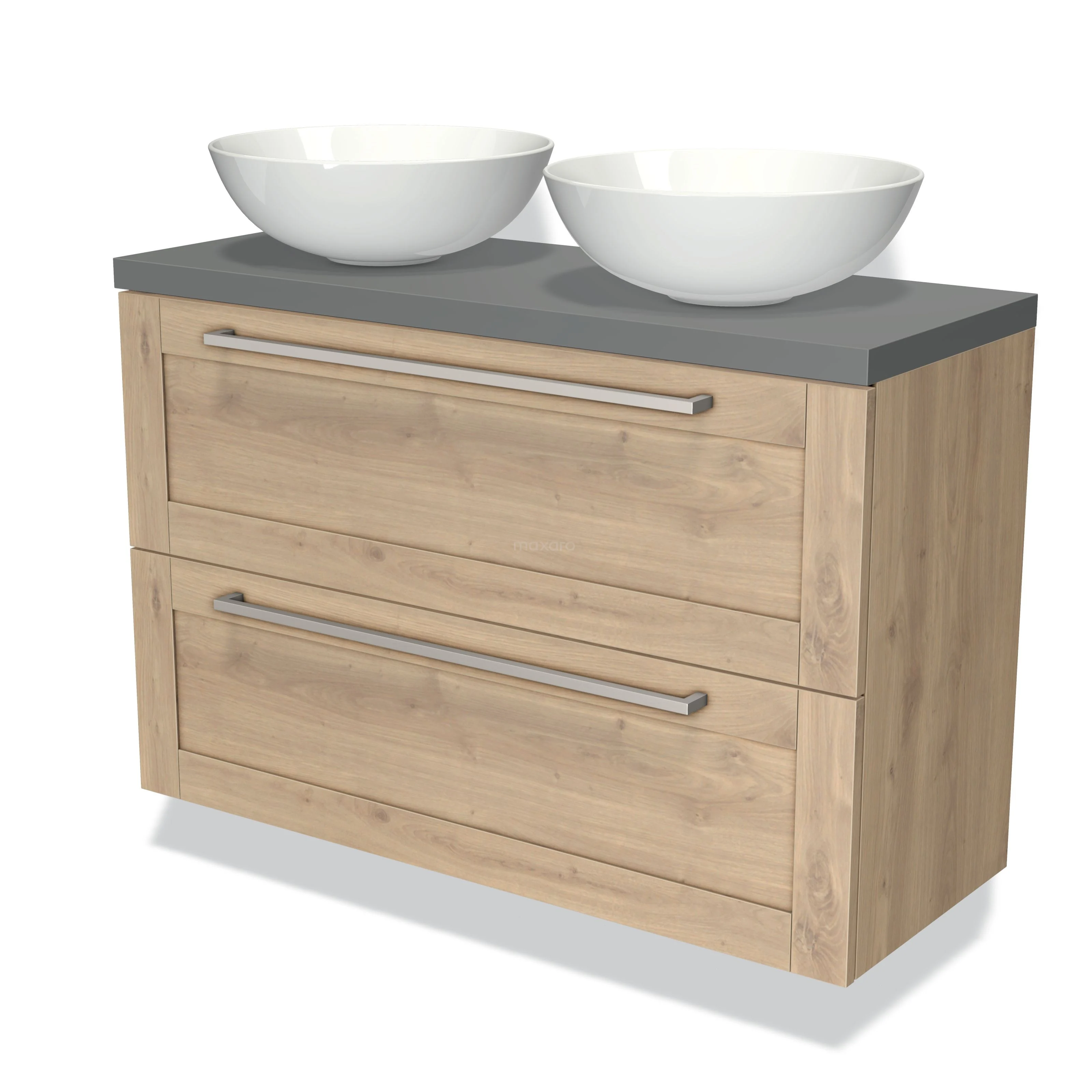 Badmöbel für Aufsatzwaschbecken 100cm Modulo Plato Slim Hellbraune Eiche 2 Schubladen Rahmen