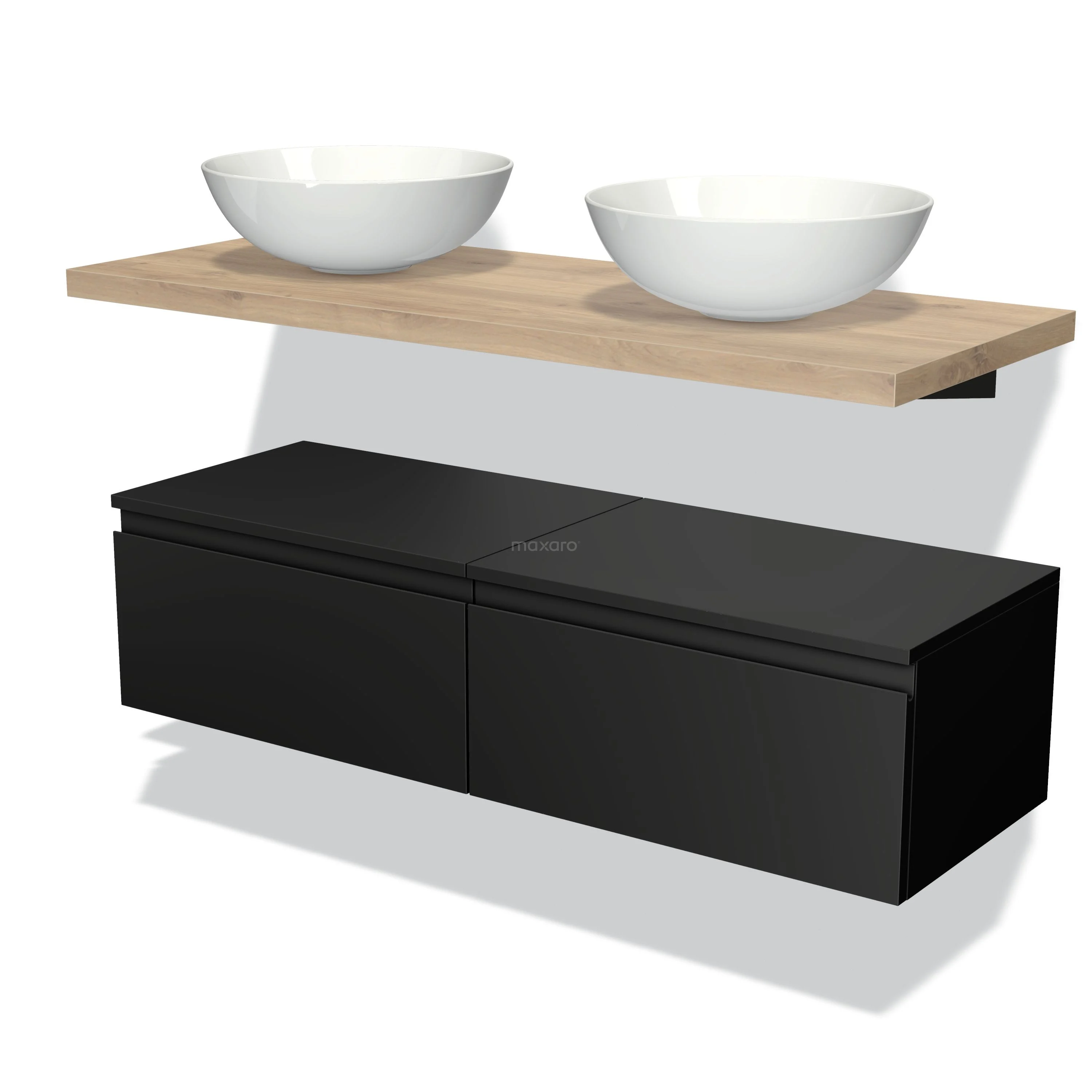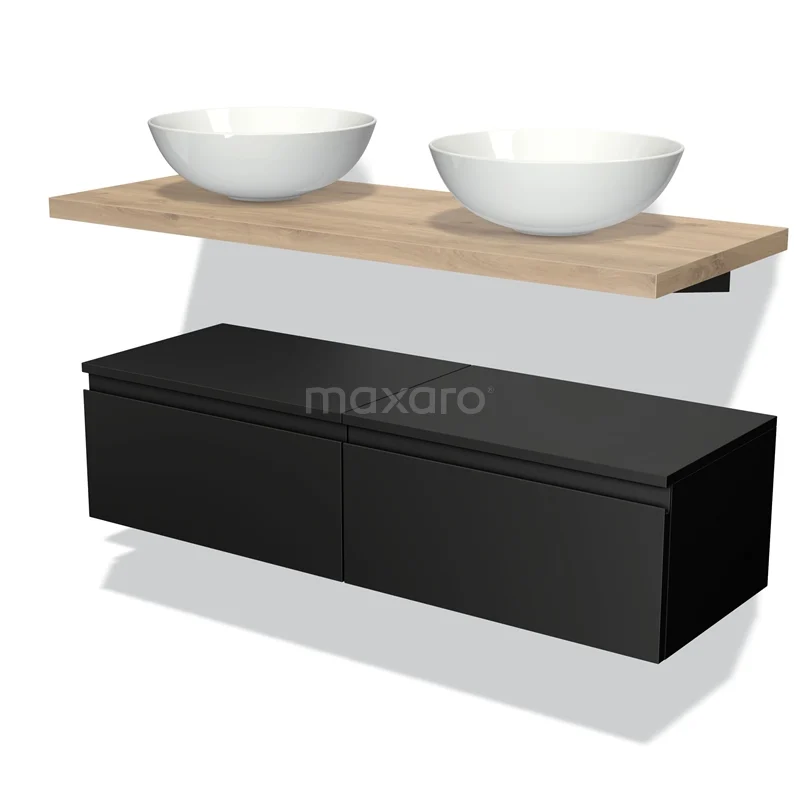 Badmöbel für Aufsatzwaschbecken 120 cm Modulo Plato Matt Schwarz 2 Schubladen Grifflos Hellbraune Eiche Platte