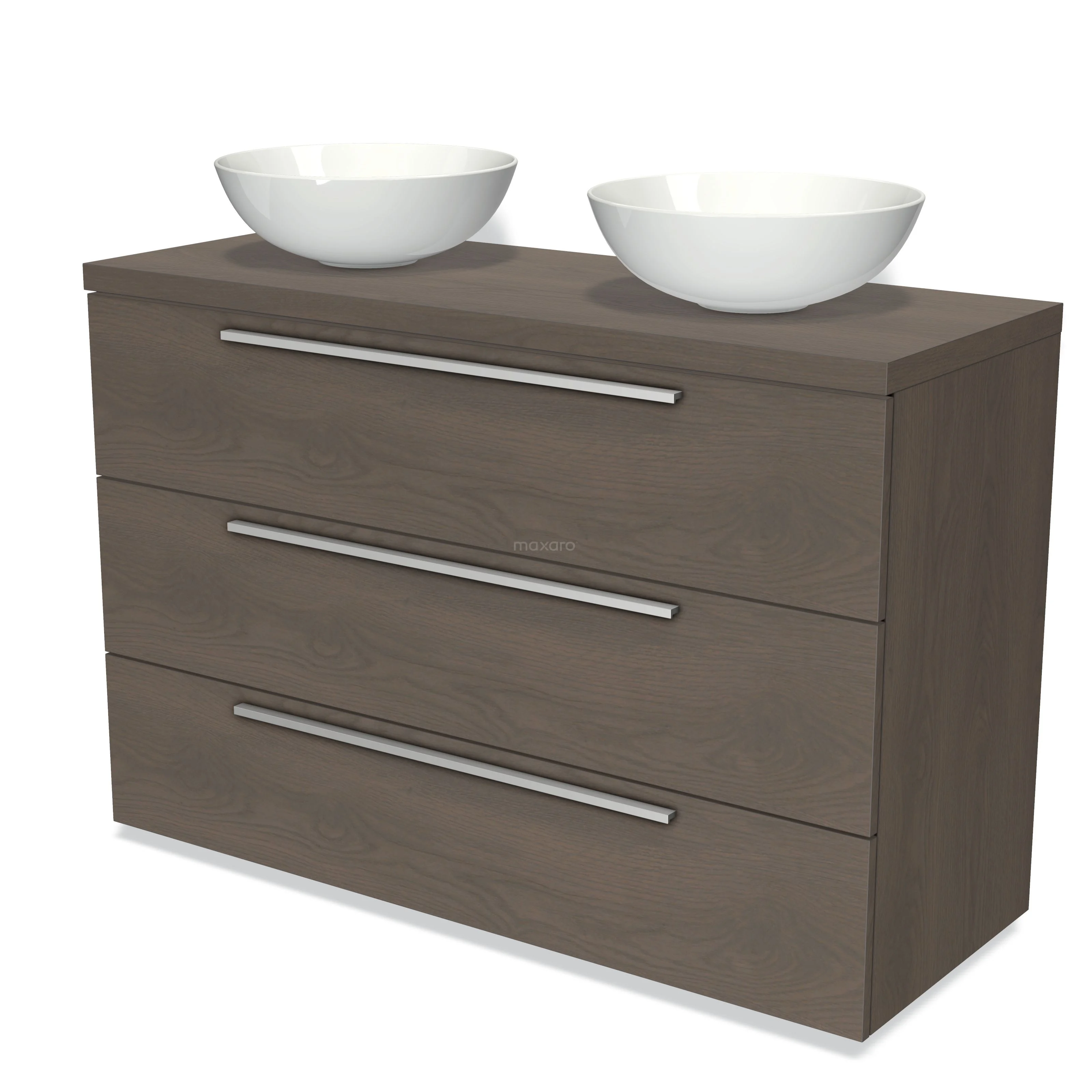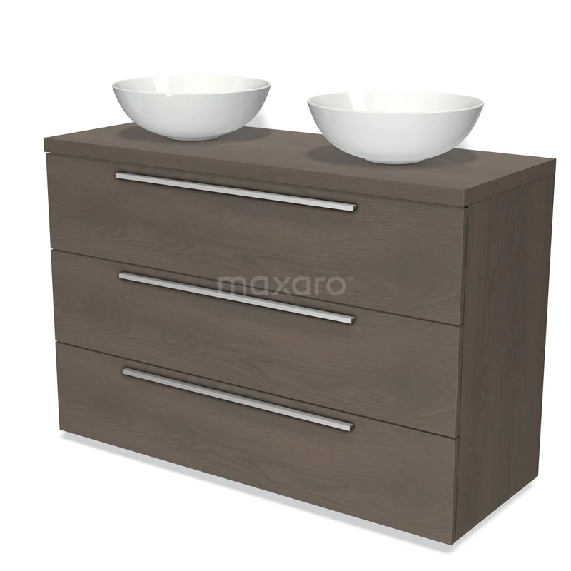 Badmöbel für Aufsatzwaschbecken 120cm Modulo Plato dunkelbraune Eiche 3 Schubladen Flach