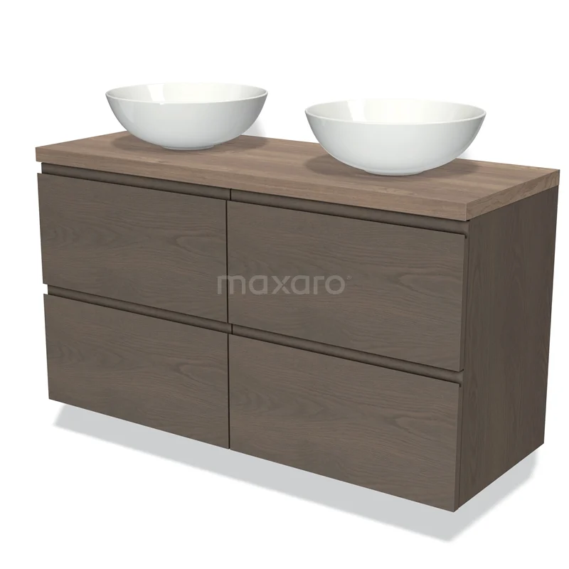 Badmöbel für Aufsatzwaschbecken 120cm Modulo Plato Dunkelbraune Eiche 4 Schubladen Grifflos Mittelbraune Eiche Platte