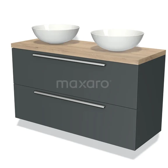 Badmöbel für Aufsatzwaschbecken 120cm Modulo Plato Dunkelgrau 2 Schubladen Flach hellbraune Eiche Platte
