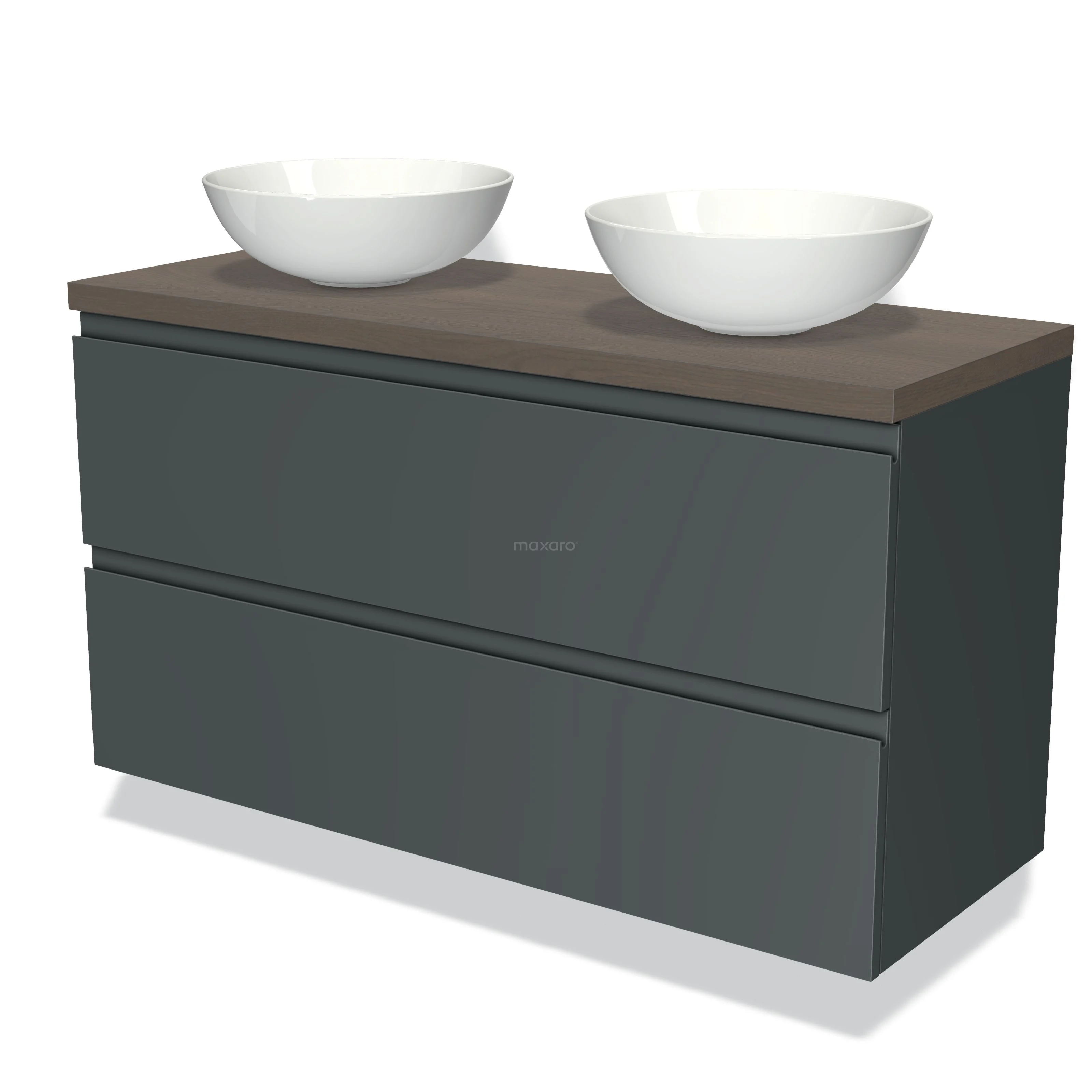 Badmöbel für Aufsatzwaschbecken 120cm Modulo Plato Dunkelgrau 2 Schubladen Grifflos Dunkelbraune Eiche Platte