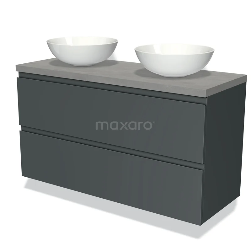 Badmöbel für Aufsatzwaschbecken 120cm Modulo Plato Dunkelgrau 2 Schubladen Grifflos Hellgrauer Beton Platte