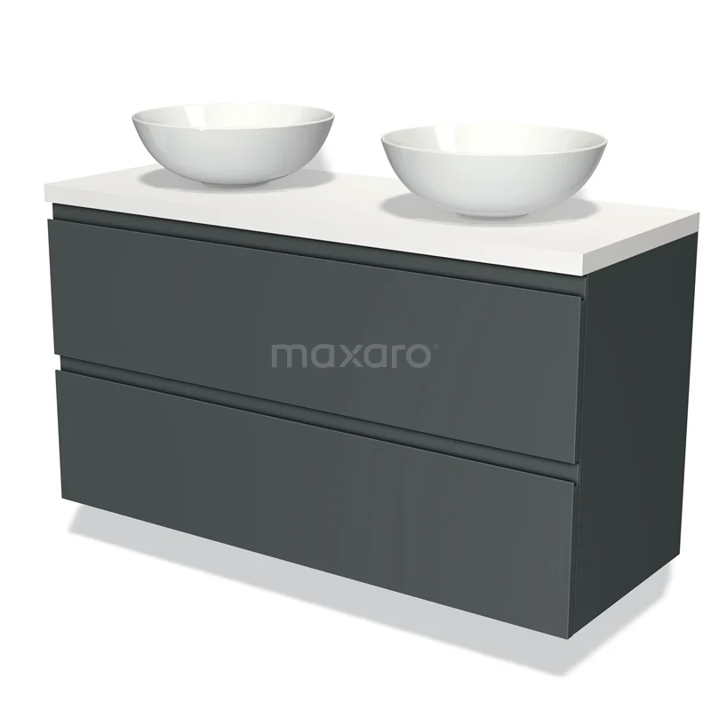 Badmöbel für Aufsatzwaschbecken 120cm Modulo Plato Dunkelgrau 2 Schubladen Grifflos Matt Weiß Platte