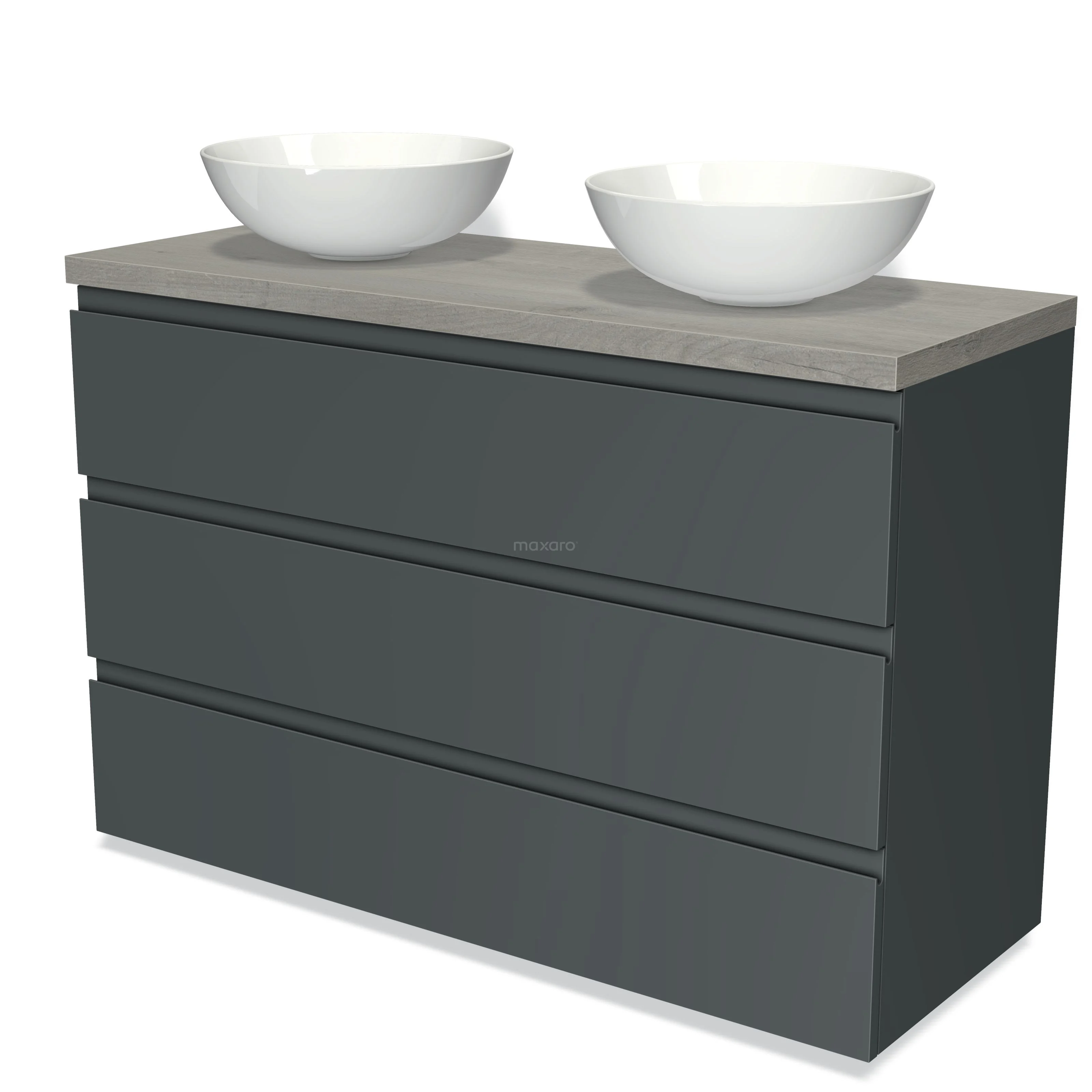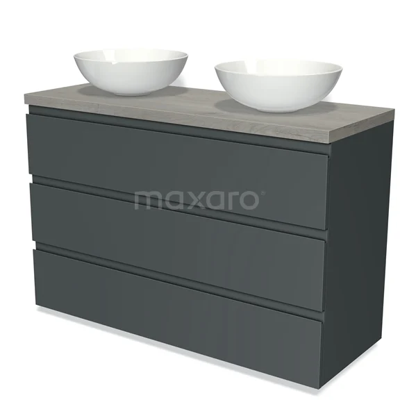 Badmöbel für Aufsatzwaschbecken 120cm Modulo Plato Dunkelgrau 3 Schubladen Grifflos Graue Eiche Platte