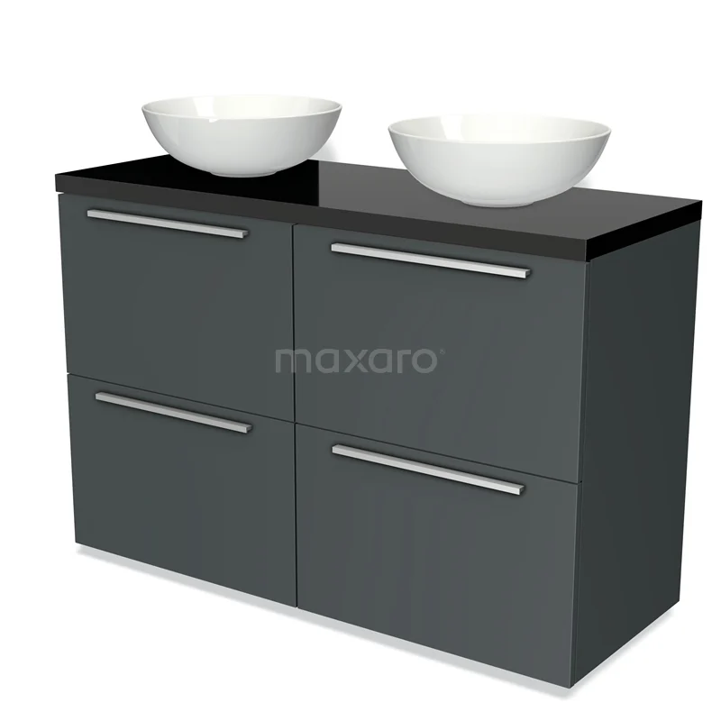 Badmöbel für Aufsatzwaschbecken 120cm Modulo Plato Dunkelgrau 4 hohe Schubladen Flach Hochglanz Schwarz Platte