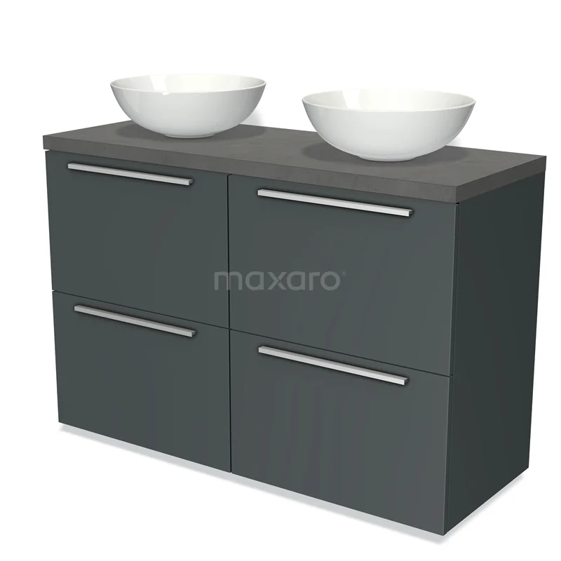Badmöbel für Aufsatzwaschbecken 120cm Modulo Plato Dunkelgrau 4 hohe Schubladen Flache Platte aus dunkelgrauem Beton