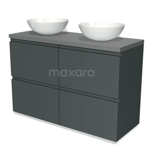 Badmöbel für Aufsatzwaschbecken 120cm Modulo Plato Dunkelgrau 4 hohe Schubladen Grifflose Platte Mittelgrau