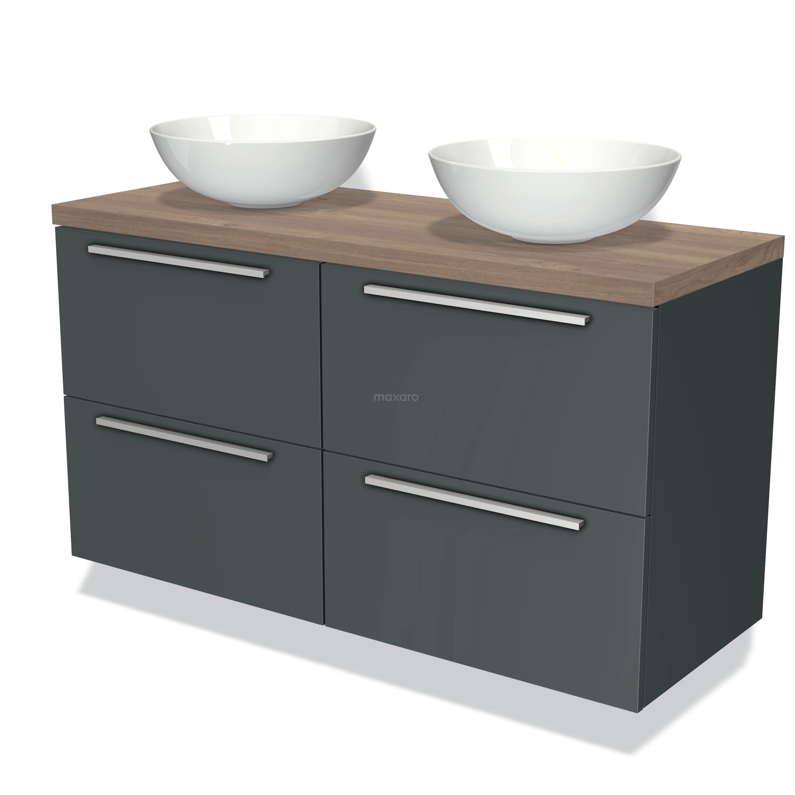 Badmöbel für Aufsatzwaschbecken 120cm Modulo Plato Dunkelgrau 4 Schubladen Flach Mittelbraune Eiche Platte