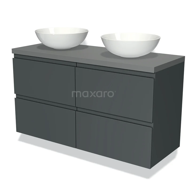Badmöbel für Aufsatzwaschbecken 120cm Modulo Plato Dunkelgrau 4 Schubladen Grifflos Mittelgrau Platte
