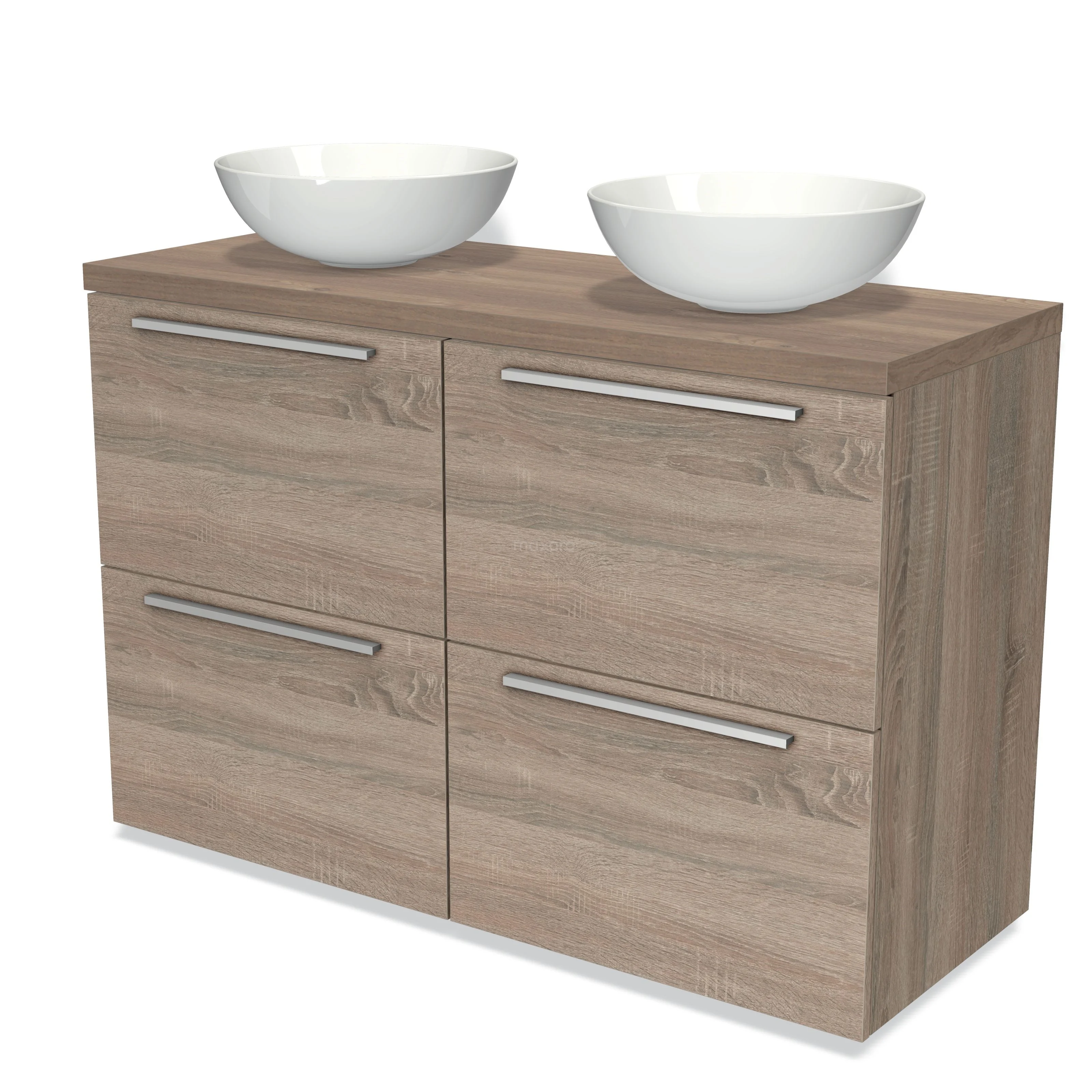 Badmöbel für Aufsatzwaschbecken 120cm Modulo Plato Eiche 4 hohe Schubladen Flach mittelbraune Eiche Platte