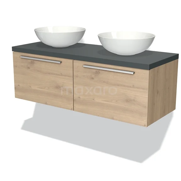 Badmöbel für Aufsatzwaschbecken 120cm Modulo Plato Hellbraune Eiche 2 Schubladen Flache Dunkelgraue Platte