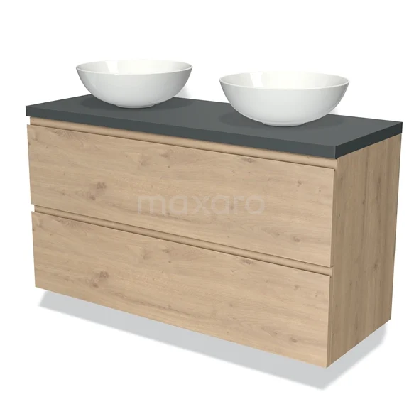 Badmöbel für Aufsatzwaschbecken 120cm Modulo Plato Hellbraune Eiche 2 Schubladen Grifflos Dunkelgrau Platte