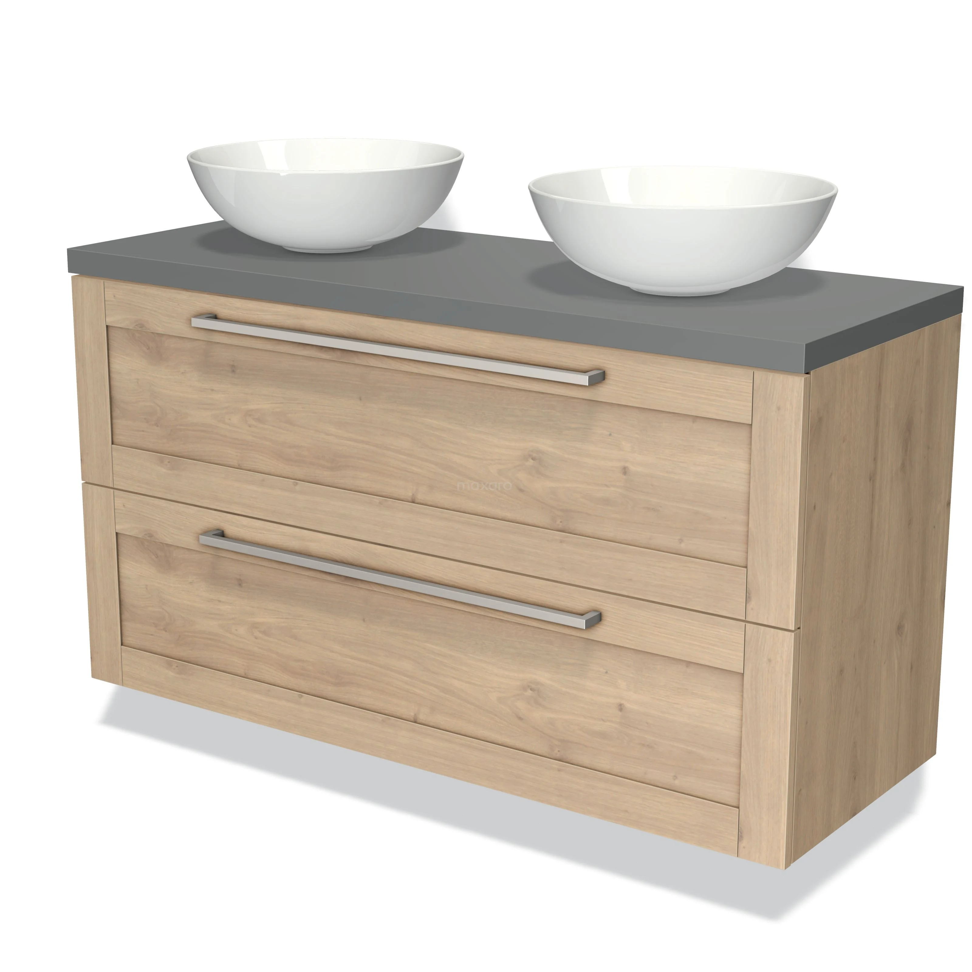 Badmöbel für Aufsatzwaschbecken 120cm Modulo Plato Hellbraune Eiche 2 Schubladen Rahmen Mittelgrau Platte
