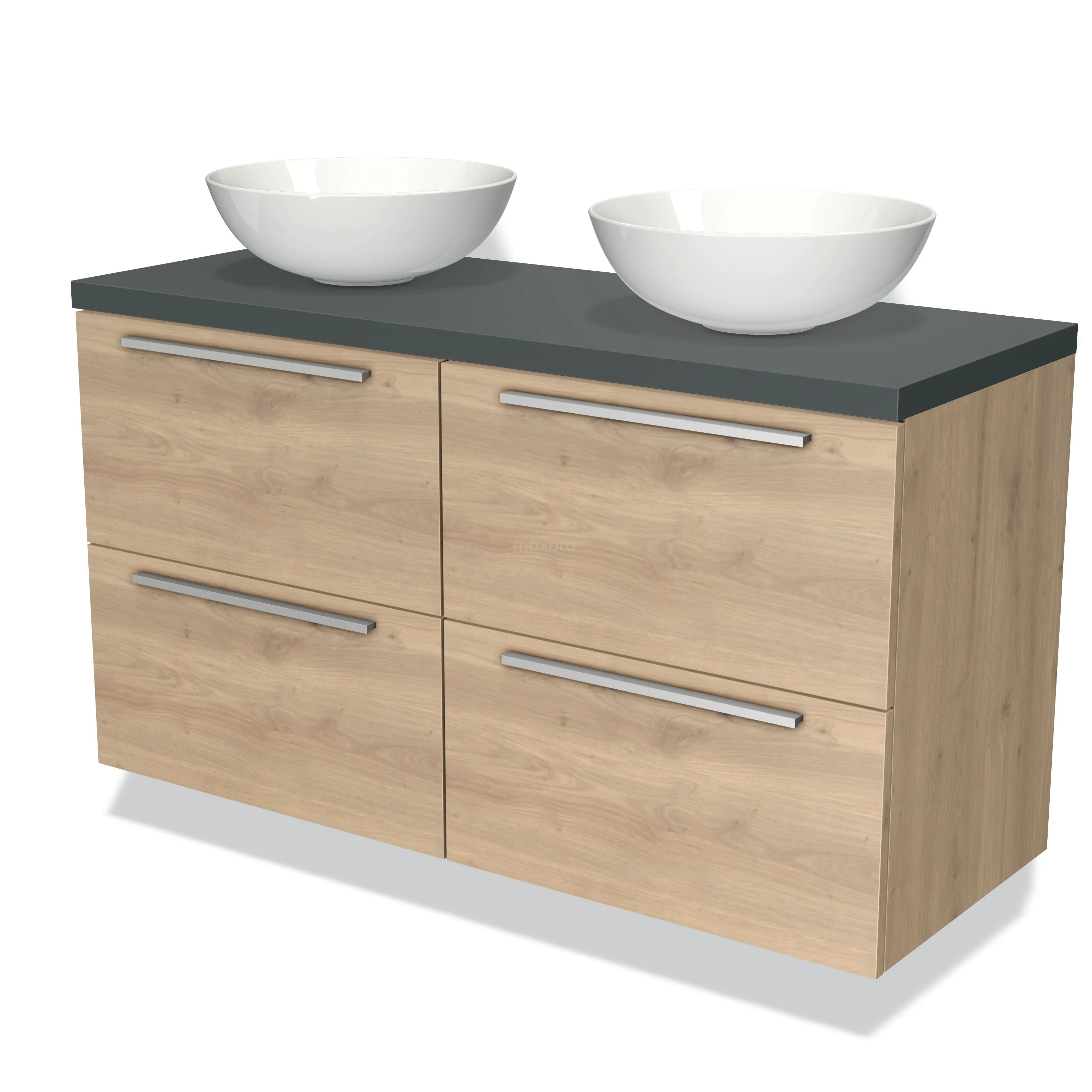 Badmöbel für Aufsatzwaschbecken 120cm Modulo Plato Hellbraune Eiche 4 Schubladen Flach Dunkelgrau Platte