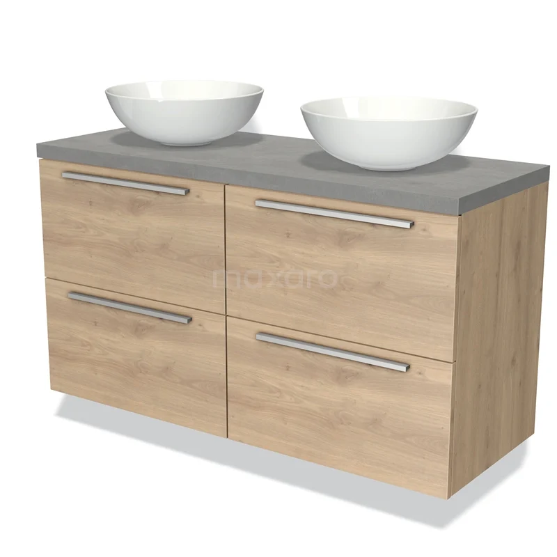 Badmöbel für Aufsatzwaschbecken 120cm Modulo Plato Hellbraune Eiche 4 Schubladen Flach Hellgrauer Beton Platte