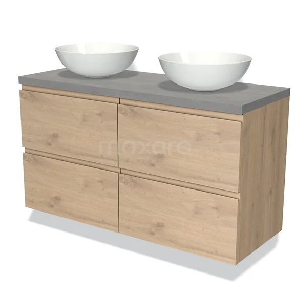 Badmöbel für Aufsatzwaschbecken 120cm Modulo Plato Hellbraune Eiche 4 Schubladen Grifflos Hellgrauer Beton Platte