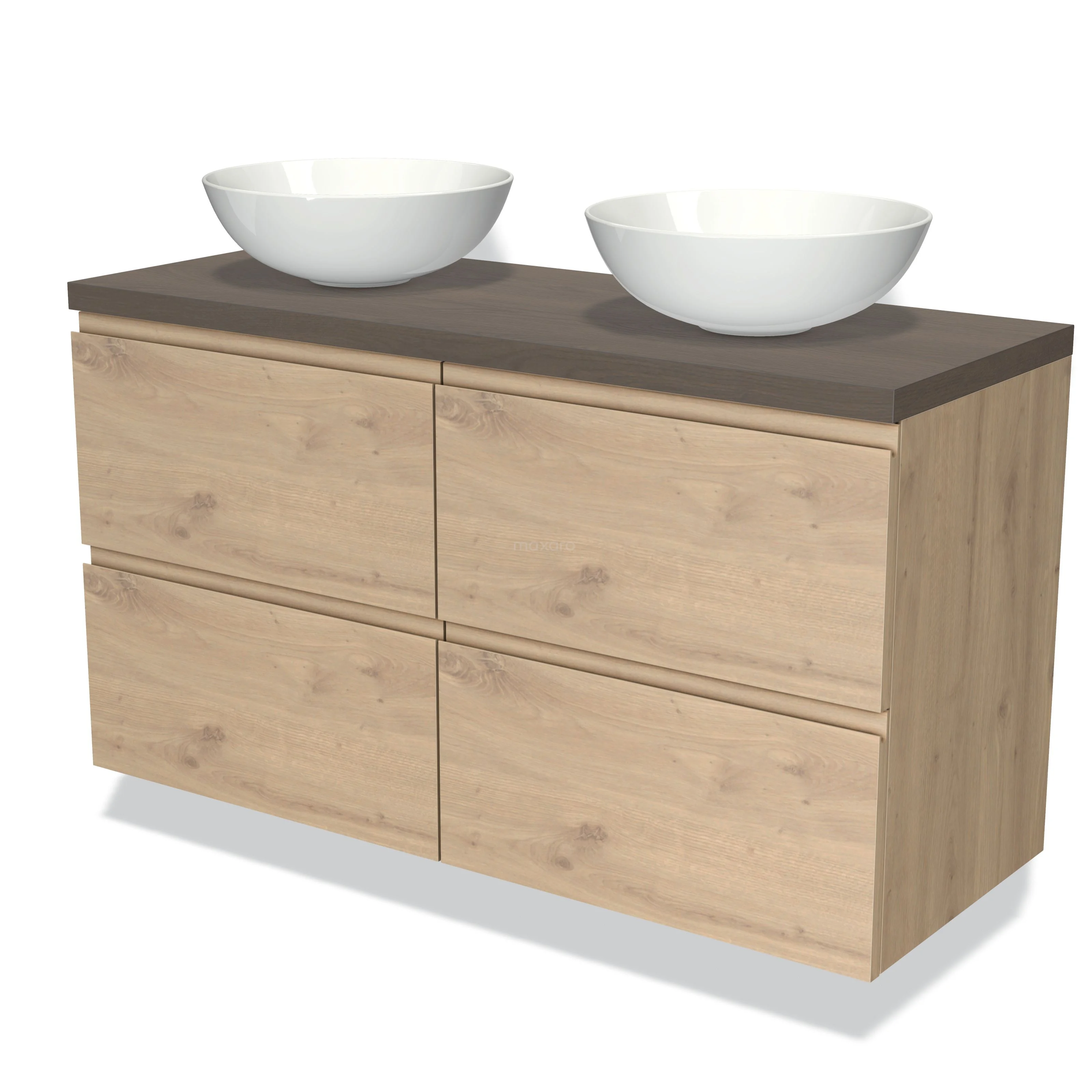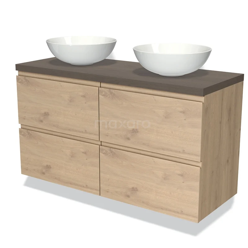 Badmöbel für Aufsatzwaschbecken 120cm Modulo Plato Hellbraune Eiche 4 Schubladen Grifflose dunkelbraune Eiche Platte