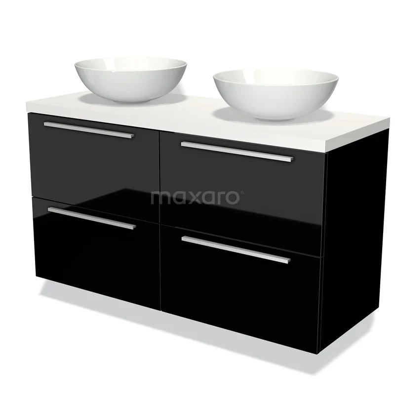 Badmöbel für Aufsatzwaschbecken 120cm Modulo Plato Hochglanz Schwarz 4 Schubladen Flach Matt Weiß Platte