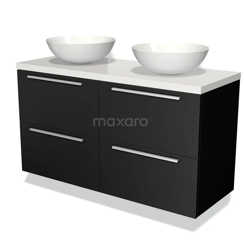 Badmöbel für Aufsatzwaschbecken 120cm Modulo Plato Matt Schwarz 4 Schubladen Flach Hochglanz Weiß Platte