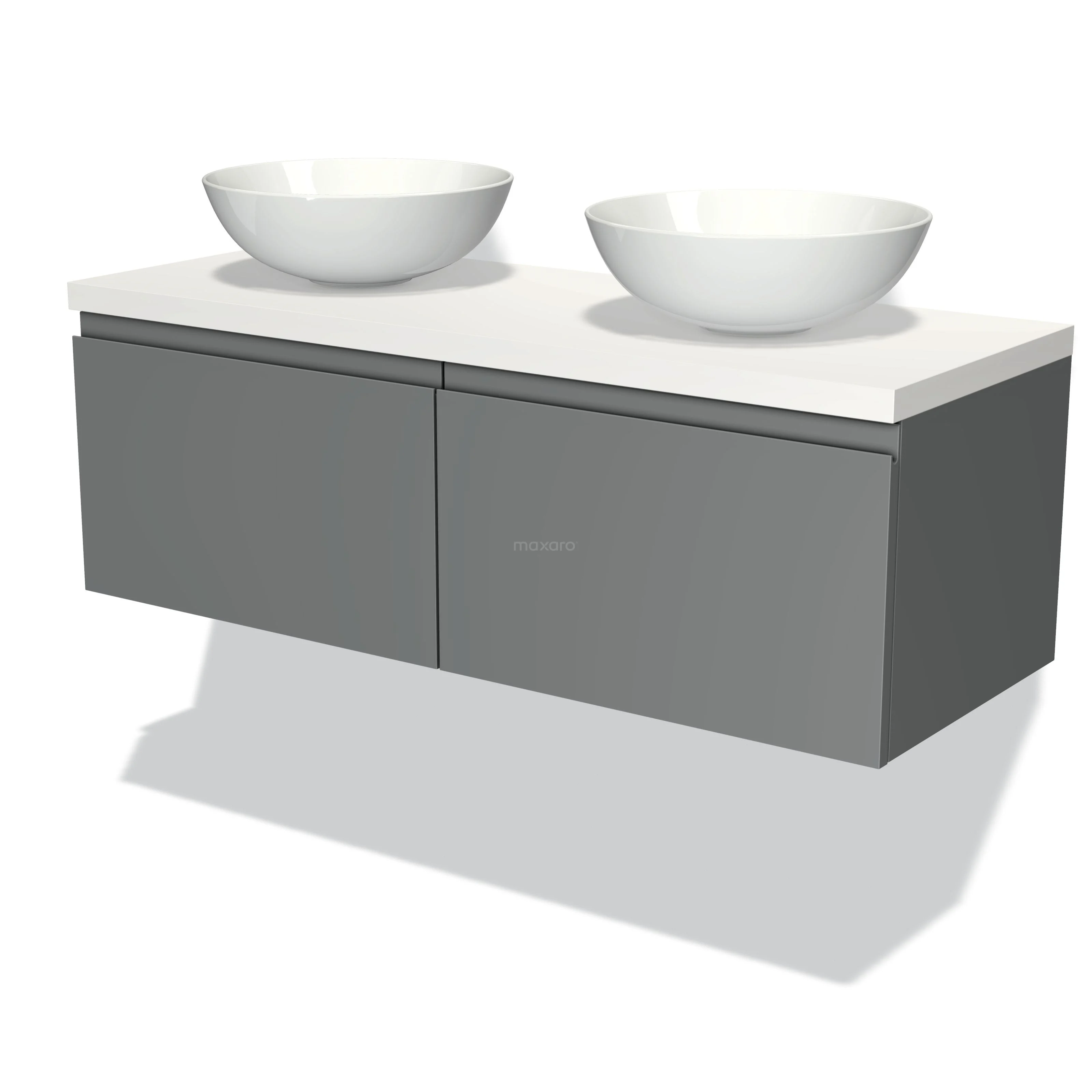 Badmöbel für Aufsatzwaschbecken 120cm Modulo Plato Mittelgrau 2 Schubladen Grifflos Matt Weiß Platte