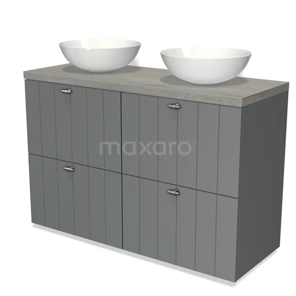 Badmöbel für Aufsatzwaschbecken 120cm Modulo Plato Mittelgrau 4 hohe Schubladen Lamelle Graue Eiche Platte