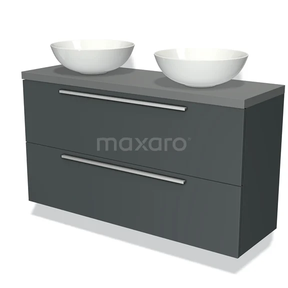 Badmöbel für Aufsatzwaschbecken 120cm Modulo Plato Slim Dunkelgrau 2 Schubladen Flach