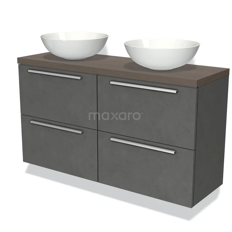Badmöbel für Aufsatzwaschbecken 120cm Modulo Plato Slim Dunkelgrauer Beton 4 Schubladen Flach Dunkelbraune Eiche Platte