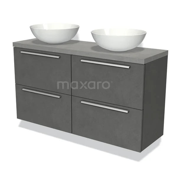 Badmöbel für Aufsatzwaschbecken 120cm Modulo Plato Slim Dunkelgrauer Beton 4 Schubladen Flach Hellgrauer Beton Platte