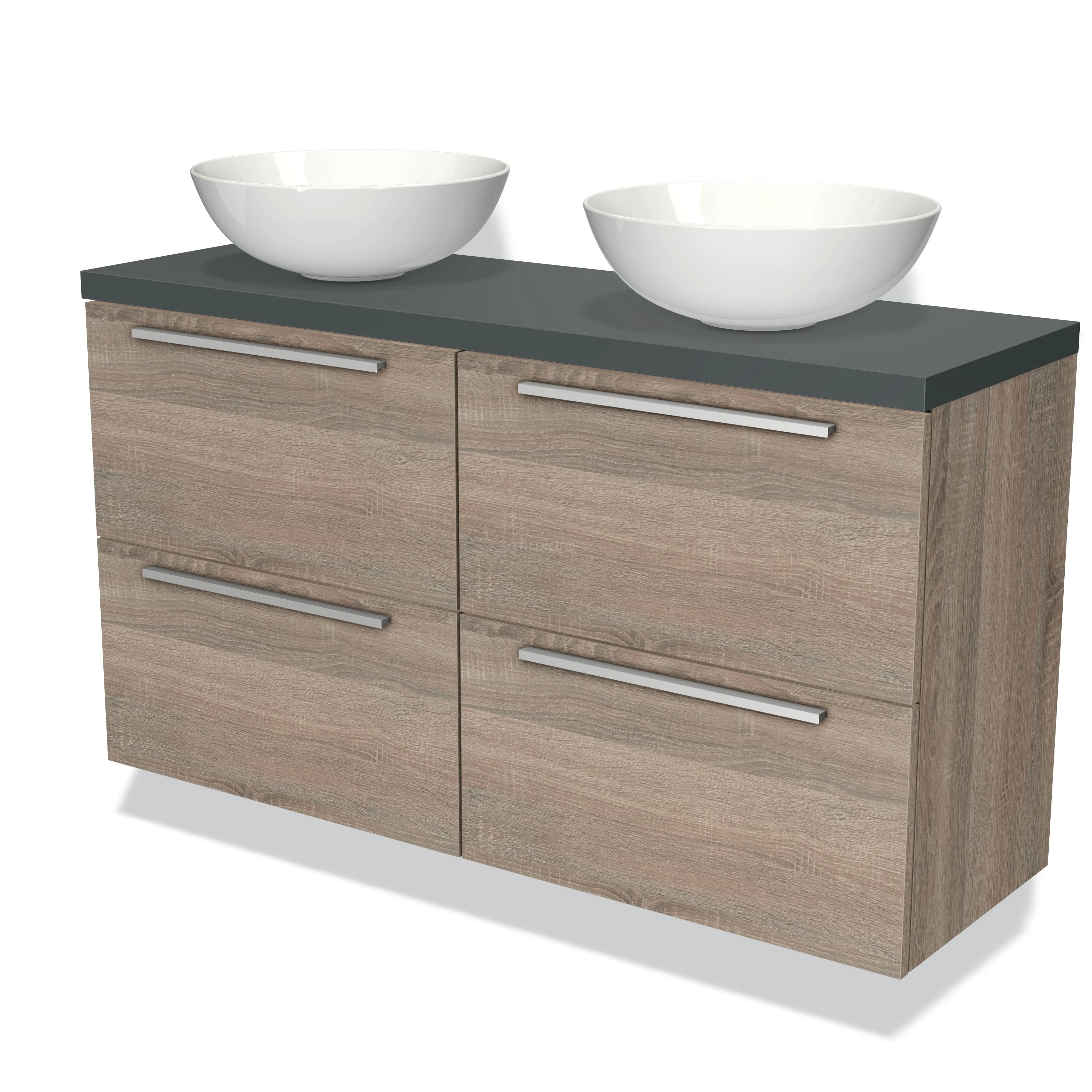 Badmöbel für Aufsatzwaschbecken 120cm Modulo Plato Slim Eiche 4 Schubladen Flach Dunkelgrau Platte